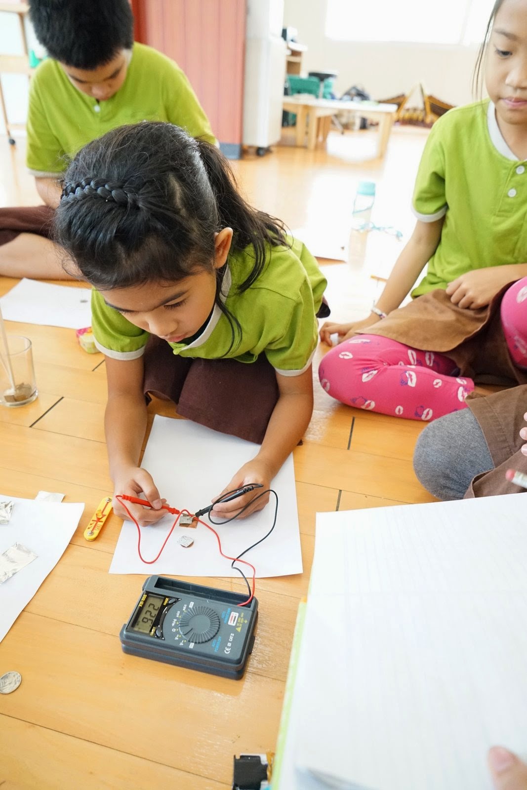 สำหรับเด็กประถมปลาย ผมให้ทดลองสร้างแบตเตอรี่กันครับ วิธีทำก็ง่ายมากคือเอาโลหะสองชนิดมาเป็นขั้ว แล้วคั่นกลางระหว่างโลหะด้วยกรดหรือน้ำเกลือ แค่นี้มันก็ปล่อยกระแสไฟฟ้ามาให้แล้วครับ