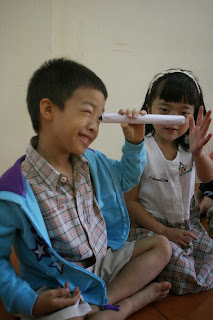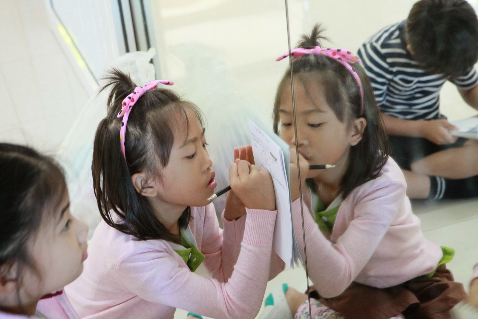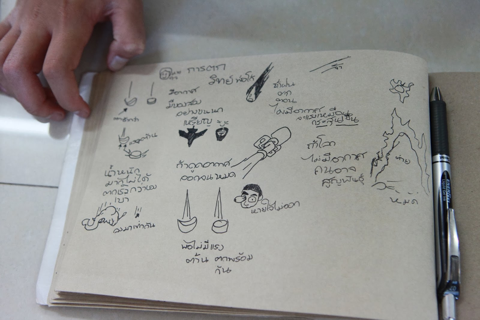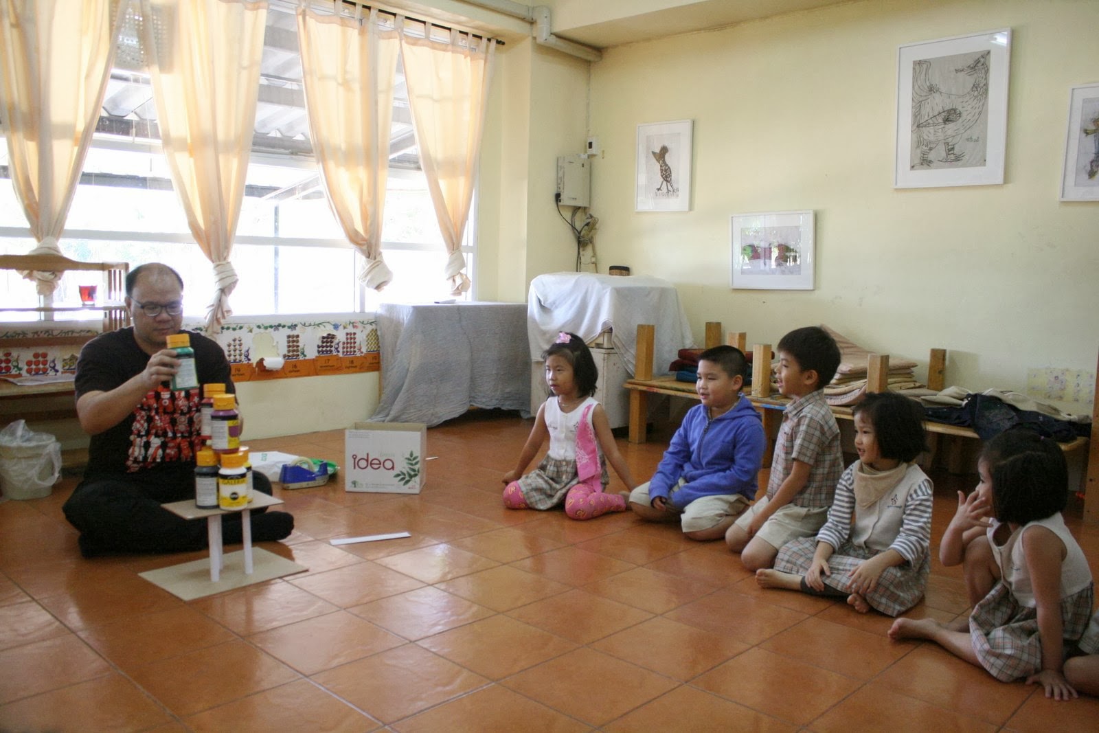 สำหรับเด็กอนุบาลสาม ผมเอากระดาษ A4 มาม้วนเป็นทรงกระบอกแล้วใช้เป็นขาตั้งรับน้ำหนักมากๆเช่นโต๊ะไม้ทั้งตัวครับ สำหรับเด็กประถมต้น เราเริ่มเรียนเรื่องตากัน โดยสังเกตตาของตัวเองและเพื่อนๆ นับขนตา (ได้ข้างละร้อย-ร้อยกว่าเส้นต่อหนึ่งตา รวมขนตาบนและขนตาล่าง) ได้ดูรูรับแสง (pupil) ที่เป็นรูกลมให้แสงเข้าไปในตาได้ รวมถึงอธิบายว่าทำไมถ่ายภาพมีแฟลชในที่แสงน้อยๆตาเราจึงแดงและผู้ผลิตกล้องทำอย่างไรถึงลดตาแดงได้ สำหรับเด็กประถมปลายเราถ่ายภาพการตกของลูกบาสและลูกเทนนิสแล้วมาเปิดดูทีละเฟรมด้วยโปรแกรม Tracker กัน ได้เรียนรู้ว่าถ้าไม่มีแรงต้านอากาศ ของต่างๆจะตกลงมาเหมือนๆกันโดยดูวิดีโอลูกบอลเหล็กและขนนกในโหลแก้วที่สูบอากาศออก และได้ฟังคำอธิบายจากกฎแรงโน้มถ่วงและกฎการเคลื่อนที่ของนิวตันว่าทำไมมันถึงเป็นเช่นนั้น นอกจากนี้เด็กๆประถมปลายยังได้ดูตัวอย่างการเริ่มต้นธุรกิจบน Kickstarter.com โดยเราดูปืนกลหนังยางและปากกาแม่เหล็กกันครับ