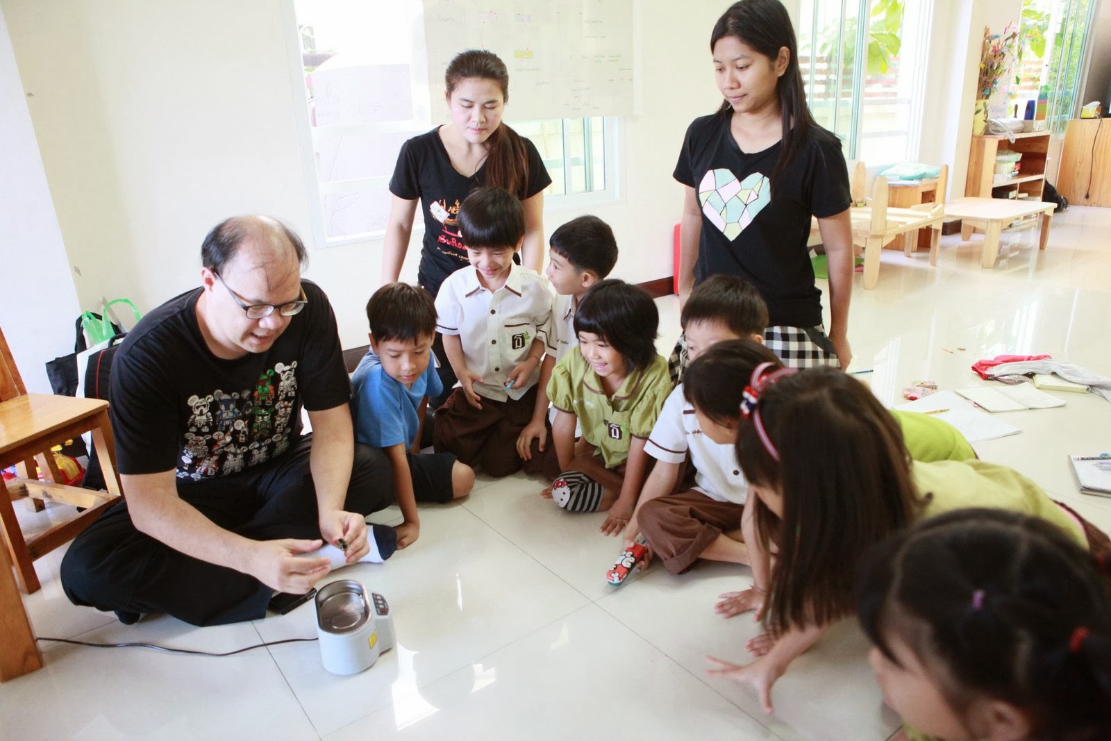 วันอังคารที่ผ่านมานี้ผมไปสอนเด็กๆกลุ่มบ้านเรียนปฐมธรรม กลุ่มบ้านเรียนเฟิร์น และอนุบาลบ้านพลอยภูมิครับ วันนี้เด็กอนุบาลได้ทำปี่จากหลอดกาแฟ ได้รู้วิธีใช้ถุงพลาสติกเป็นนกหวีด และนั่ง skateboard กัน เด็กประถมต้นได้คุยกันเรื่องหูและเสียงต่อ ได้รู้จักช่วงความถี่ของเสียงที่สัตว์ต่างๆฟังได้ ได้ดูเครื่องทำความสะอาดด้วยเสียงความถี่สูง (