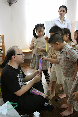 พอเด็กๆดูเสร็จผมก็ทำปี่หลอดกาแฟให้เด็กดูครับ เด็กๆบางคนจำได้ว่าเคยเล่นแล้วตอนอยู่อนุบาล