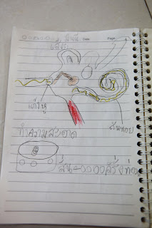 สำหรับเด็กปฐมต้นกลุ่มบ้านเรียน ผมคุยเรื่องหูและเสียงต่อครับ ก่อนอื่นผมให้ดูอนิเมชั่นว่าหูทำงานอย่างไร เพื่อทบทวน: