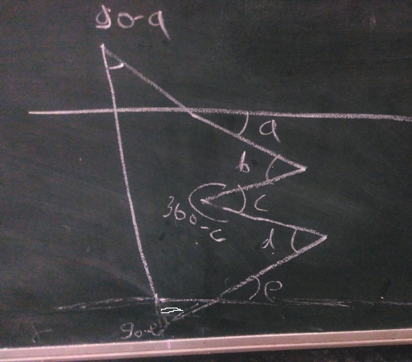 She now saw a pentagon and used the property of interior angles of pentagon to prove that a + c = b + d