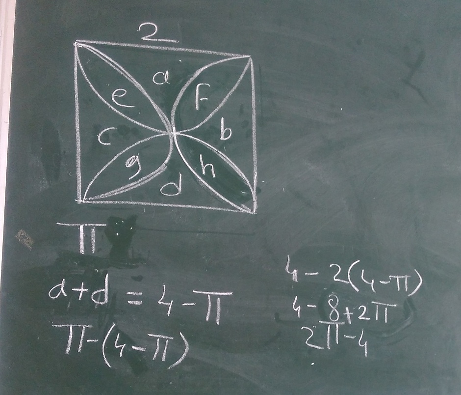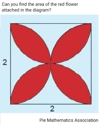 So the above problem I saw on facebook and I was quite sure, they would like it - Area of Flower :) The bounding shape is Square of side 2 units and the petals are formed using semi-circles. I had given this problem to them as home-work...