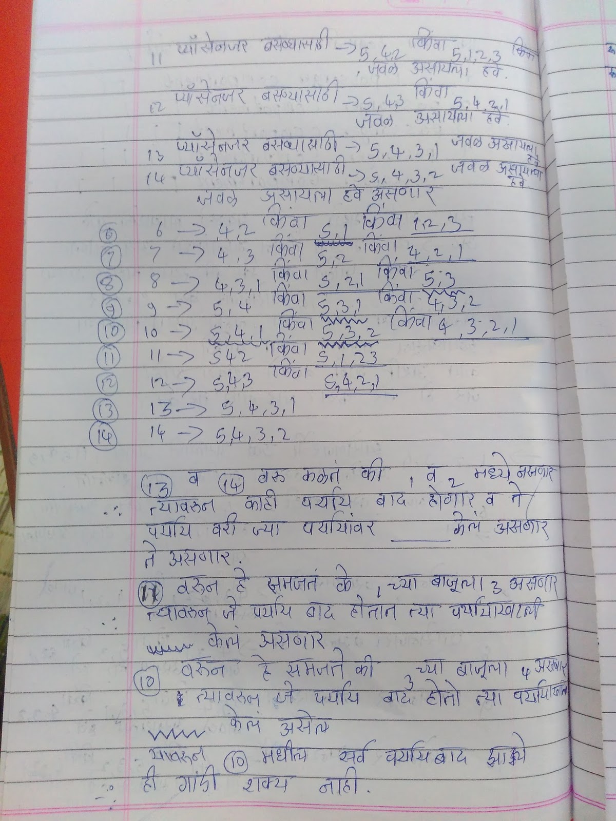 Analyzing the only remaining option for 11 i.e. 5,4,2, its clear that 3 will have to be next to 1. This rules out two more options (5,1) for 6 and (5,4,1) for 10..... 1 3 ? ? 2