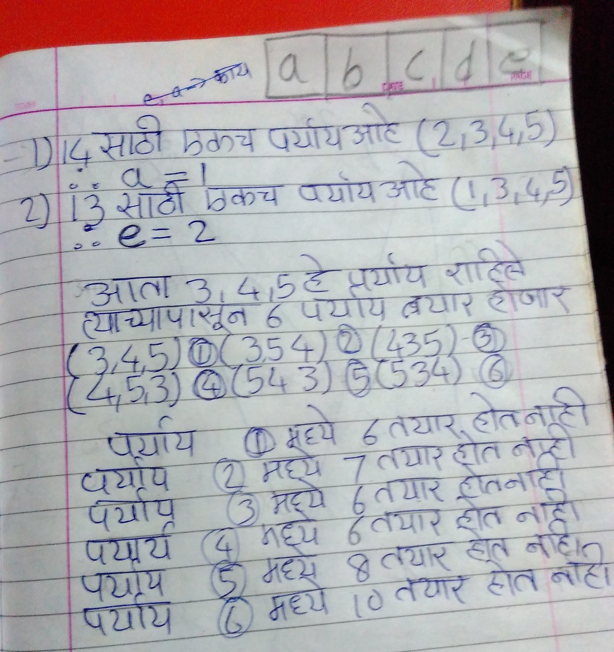 Kanchan said that her approach is also somewhat similar to Vaishnavi's (starting from the bigger numbers).. This is her work:
