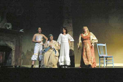 From left, Lucinda (Zoe Falco), Florinda (Amber Ricker) and Cinderella (Josie Lafferty) discuss going to the king's party with Cinderella's stepmother (Sally Neel). The play benefits music students who continue their studies in college.