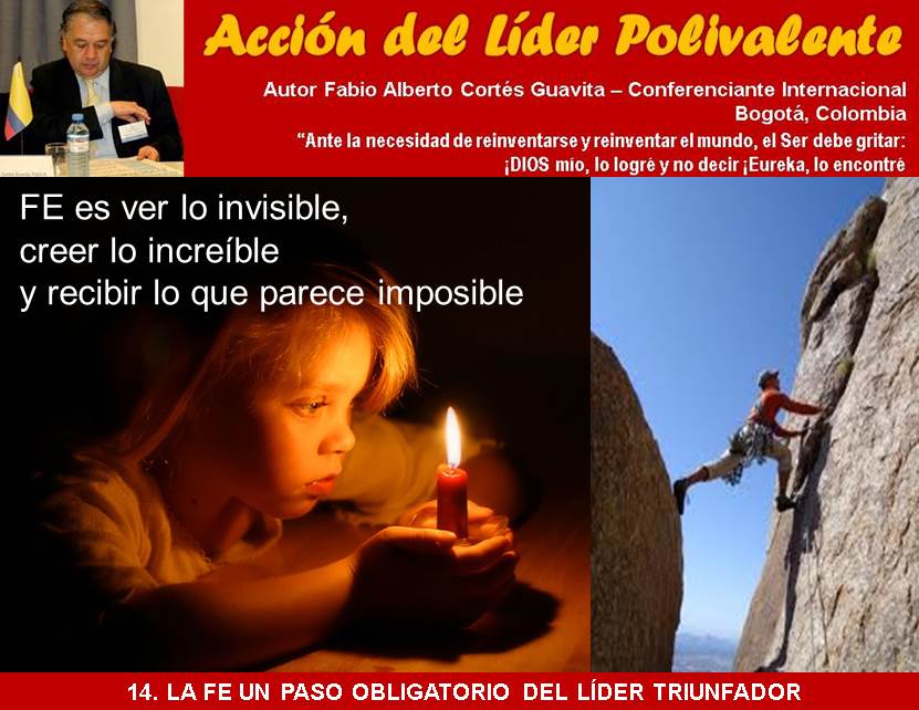 Desde esa perspectiva hay que tener FE en sí mismo y confianza en los demás, el líder que pretenda hacer surgir algo en sus trabajadores, asociados o congéneres, debe pensar como Sócrates cuando proponía “Quien puede llegar a ser el ser”, es el mismo criterio del empoderamiento cuando afirma que la gente tienen el poder y el facultarlo significa reconocerle ese poder que tiene. Se debe entender que el ser no fue llamado a la perfección sino a la infinitud, a la trascendencia, y esto solo se logra con la FE en lo que hacemos, con creer en lo que proponemos como proyecto de vida, en lo que pretendemos trasmitir a los demás.