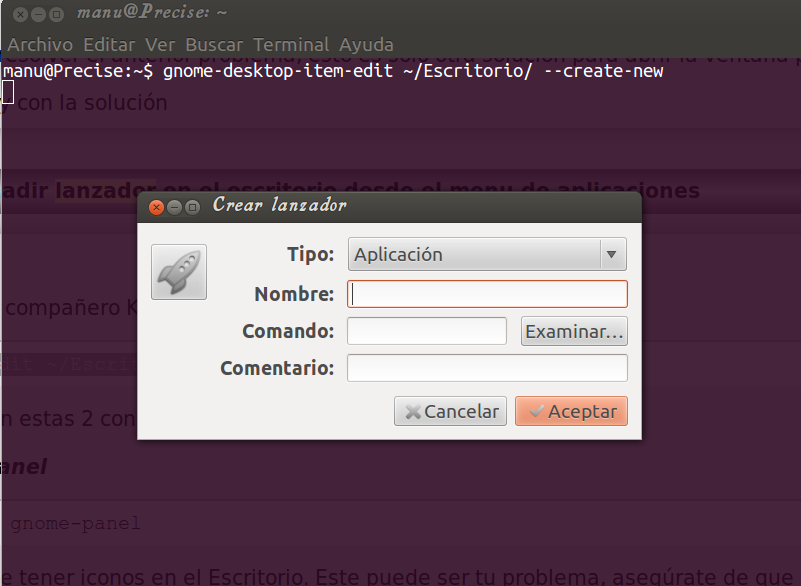 En Nombre ponemos algo que nos recuerde que vamos a abrir el emulador de Android, en Comando ponemos esto:
