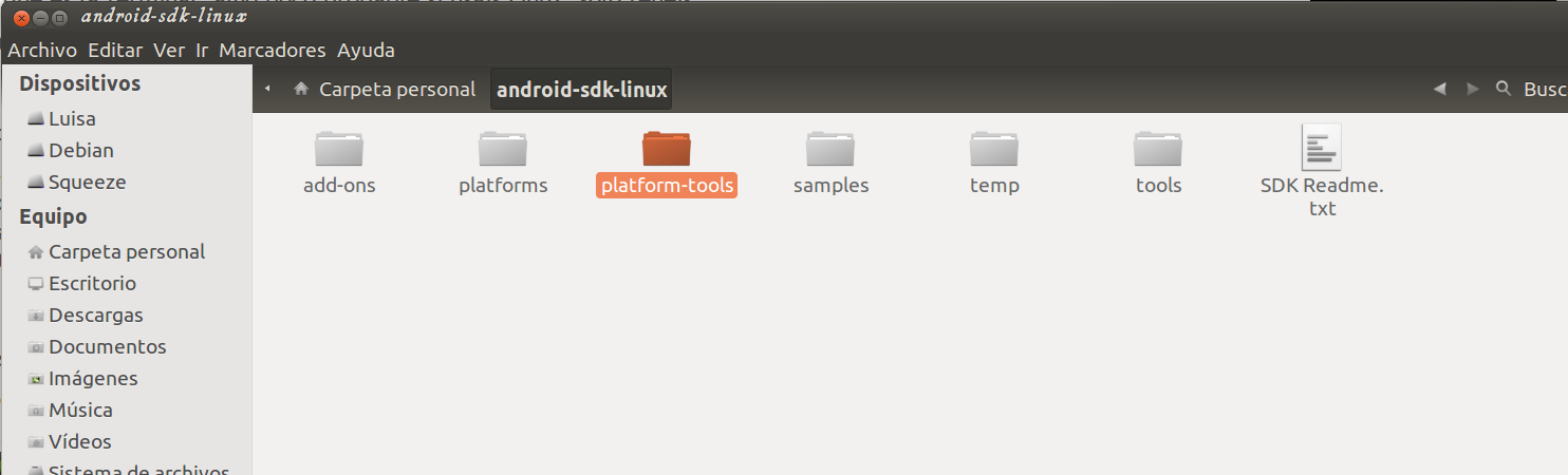 platform-tools" desde la terminal, si no sabéis lo que es la terminal, algo poco probable si usáis GNU/Linux, sólo tenéis que pulsar: