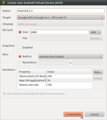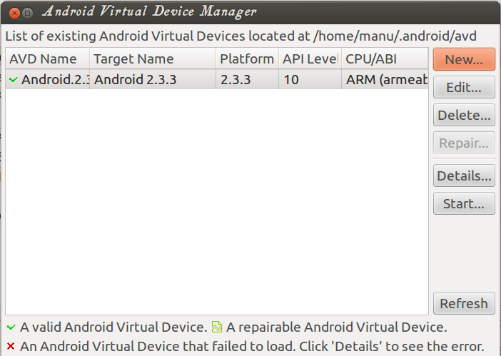 Si habéis hecho todo el tutorial siguiendo mis pasos sólo tendréis que cambiar lo que pone en negrita por vuestro nombre de usuario. Si habéis llamado a la máquina virtual de Android de otra manera tenéis que sustituir también @Android.2.3 por @COMOHAYASLLAMADOALEMULADOR.