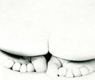 Lotte Kjøller maler der i mod men sætter foto af kroppe ind som et ekstra vindue i maleriet. Hvor går grænserne? Kan man lave ready made skulpturer, video og bemalede malerier og kalde det foto? Hvad er et foto? eR et gammelt familiefoto kunst?