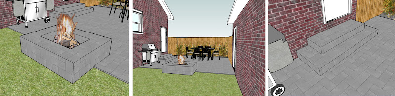 After the design was born in SketchUp Pro it was then easily presented in LayOut with the File > Send to LayOut command in SketchUp Pro. This one page presentation of the proposed construction allowed me to clearly communicate the design intent graphically which eliminated the communication barrier between me and the concrete team. Three quick scaled and dimensioned diagrams display the critical dimensions in a way that anyone can understand. The workforce immediately understood the design intent and delivered the patio as shown in my 3D SketchUp Pro model. LayOut allowed us to insure complete satisfaction for the client and eliminate any possibility of disappointment.