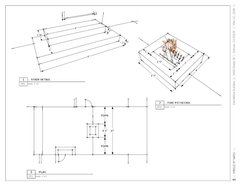 This urban residential patio project presented unique challenges in that the backyard was small and the circulation between the garage and house was critical. After exploring several designs in SketchUp Pro, It was essential that the actual patio be built as drawn. To do this we needed to communicate clearly with the concrete team.