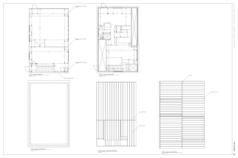 After building the renovated house and new garage board by board in SketchUp Pro, we peeled the model apart using the section tool, innovative layering techniques, scenes, and styles. With these scenes we generated the permit plan presentation (almost construction documents!) in LayOut. The set also contains elevations, sections, site plan, and details sheets.