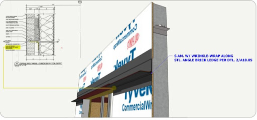 "In addition to illustrating the waterproofing details, the SketchUp model provided a simple simulation of the steps required to install the blast windows. The installation sequence was generated from the major milestones in the construction schedule. The intent of the animation was to aid the discussion and stimulate new ideas for waterproofing the windows."