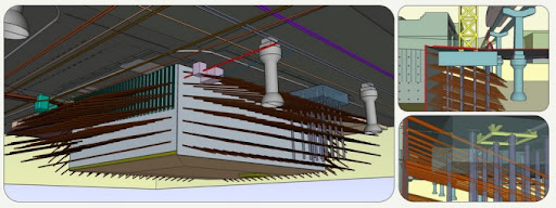 Models are also used to obtain approvals from review agencies and manage issues with respect to existing conditions in the urban environment. The image below is an example used to convey the complexity to the city review agencies of a proposed foundation structure as it relates to existing utility systems and the city elevated transit structure.