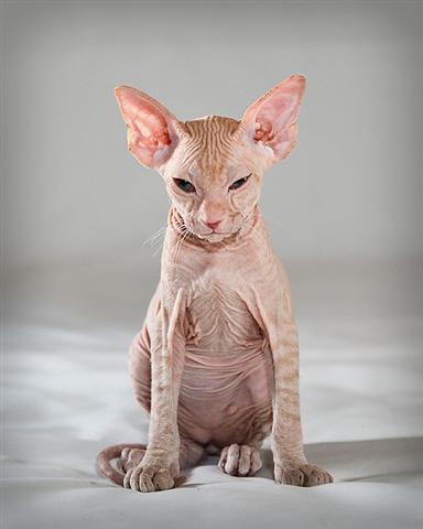 Cats are typically fuzzy, soft little creatures that enjoy a good snuggle (once in a while, on their terms)! The cats below are still very cute and friendly, though they lack one of the characteristics common to most cats: fur. There are several breeds of cat that differ in the level of hairlessness they sport. Some are completely bald while others resemble fuzzy little peaches. Here they are, in all their naked glory: