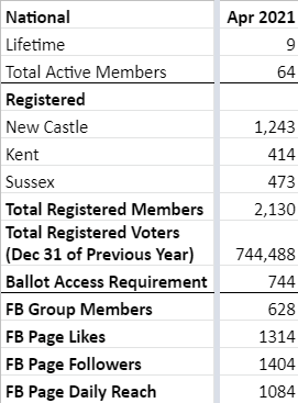New Castle County LP Monthly Members Meeting:Monday, April 5, 2021 @ 7pm