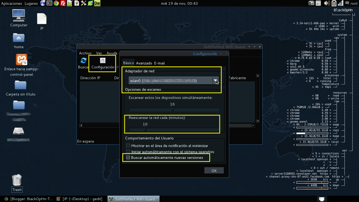 *Adaptador de Red: ---> Elegimos nuestra red "wlan" por lo general es "wlan0"
