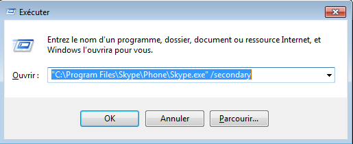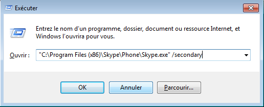 "C:\Program Files (x86)\Skype\Phone\Skype.exe" /secondary