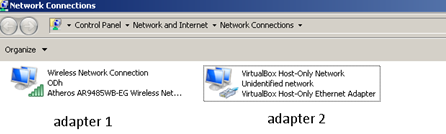 untuk adapter 2 pada PC, adalah adapter virtual yang telah di buat secara default oleh virtualbox agar PC master dapat terkoneksi dengan mesin virtual, lihat gambar untuk lebih jelasnya :