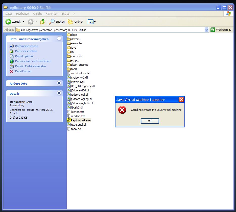 Anyway I copied the complete folder replicatorg-0040r9-Sailfish into