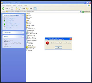 The standard version of ReplicatorG0040 in the parallel folder C:\Programme\ReplicatorG\replicatorg-0040 just starts up normally and works perfectly.
