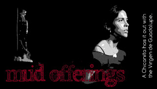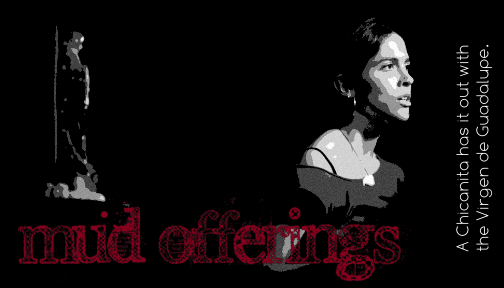 A Chicanita has it out with the Virgen de Guadalupe. This piece is a