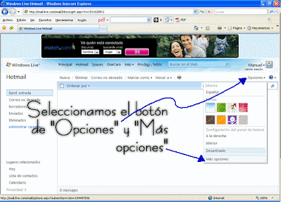 Ahora veremos cómo insertar esta imagen en nuestra firma de correo electrónico, para esto debemos regresar a nuestra pantalla de hotmail (en donde leemos nuestro correo), y estando en la pantalla principal realizamos lo siguiente: