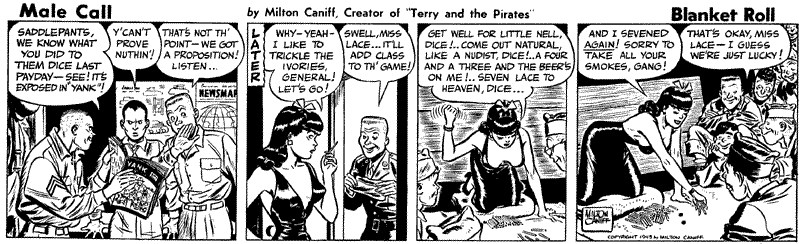 I didn't see the resemblance at first, but I kind of get it from this pic of Caniff from 1943. Ward and Caniff had something in common during WWII. Both had strips that appeared in military camp newspapers. Caniff had 'Male Call' -