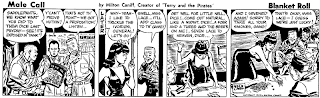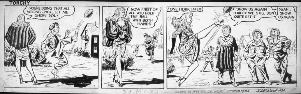 here to read "The Origin of Torchy." I see a definite Caniff influence in Ward's strip work. Ward would develop his own signature, sexy style, drawing cartoons primarily for the men's magazine market.
