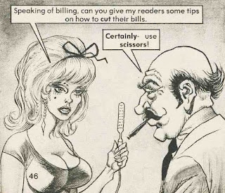 When the men's mags faded, Ward found work in the humor mags, particularly Cracked. Even when I was a kid, Ward was still at it, drawing busty Nanny Dickering. Va-va-voom! I didn't know what I was reading! Fortunately, neither did my mom.