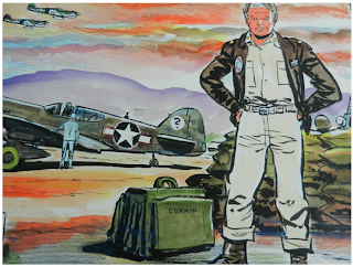 Corkin was based on Caniff's friend, Phil Cochran, a colonel in the US Army Air Forces during WWII. Cochran was commander of the 1st Air Commando Group, operating in the China-Burma-India (CBI) theater. His association with the strip made Cochran something of a real-life celebrity.