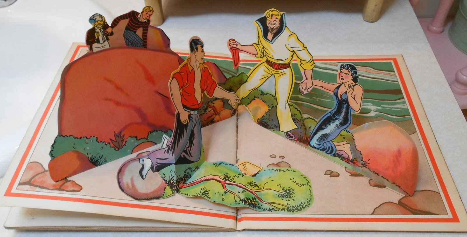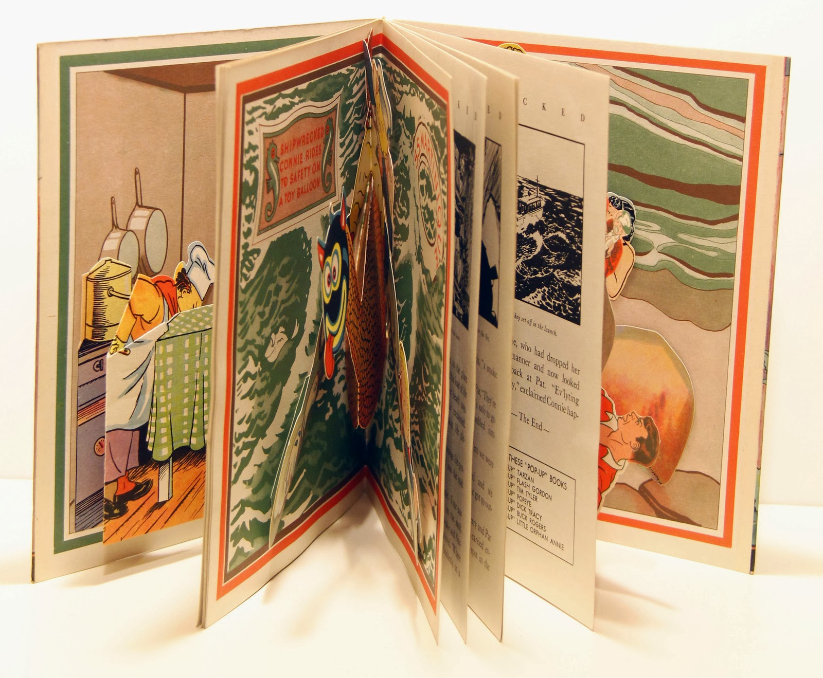 Blue Ribbon Press published a line of 'pop-up' books in the 1930s. They started with nursery rhyme characters like Mother Goose, Little Red Riding Hood and Puss in Boots. Soon after they moved into licensed characters, including Buck Rogers, Tarzan and this gem pictured above. This book commonly shows up for auction in the $80 - 100 range. Owing to age and fragility, they are rarely undamaged or completely intact. The one above is an exception. It's the best copy I've seen to date. It sold for $326.
