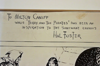 Many of the works of other artists were from Caniff's own collection. Here is the humbling inscription on a "Prince Valiant" strip from Caniff's peer, Hal Foster.