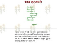 | तुमच्या माझ्या आयुष्यातल्या साध्या सोप्या घटनांवरच्या साध्या सोप्या कवितांची ही एक ऑनलाईन मैफील... इथे जेंव्हा यावंसं वाटेल तेंव्हा या... जे वाचावंसं वाटेल ते वाचा... आणि घटकाभर मन रमवून आपल्या कामाला लागा! |