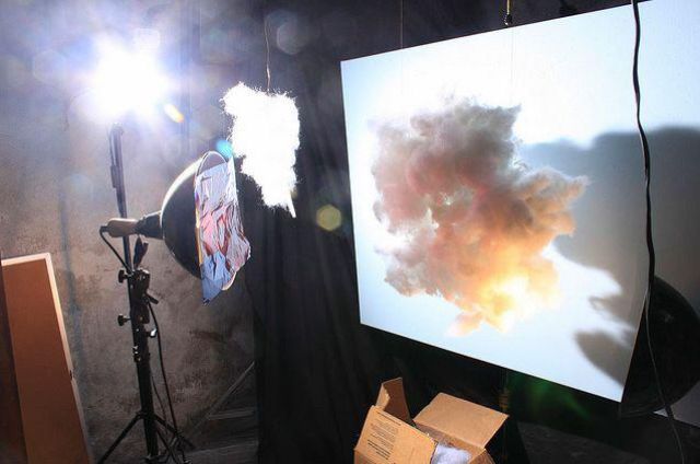 canvas & dry ice. The waterfall was created from a time exposure of falling