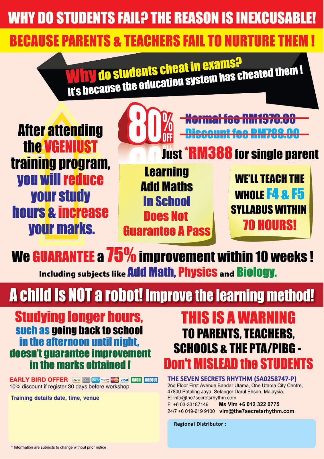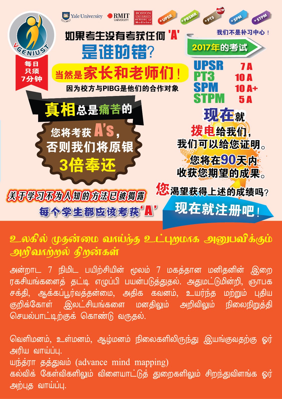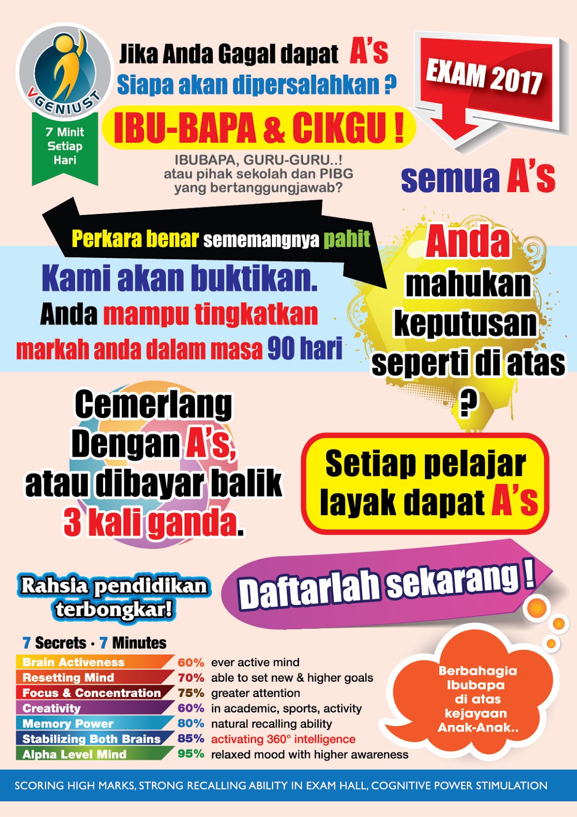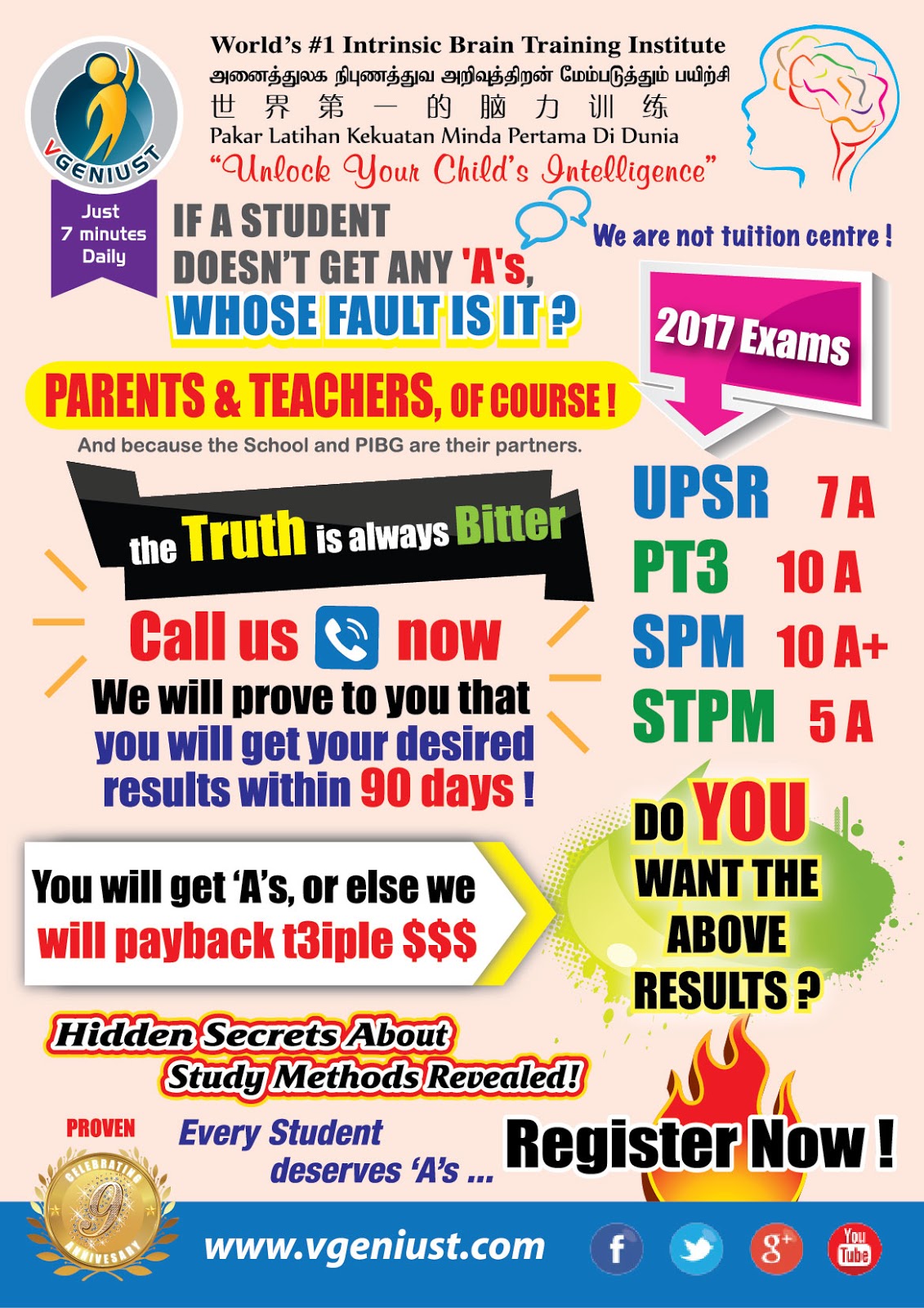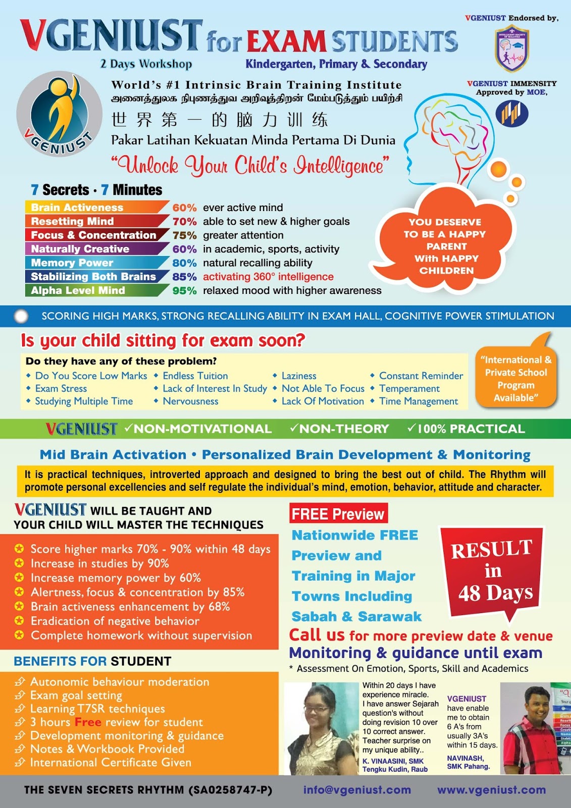 Call +60186653112 to register. +60129228619 Is your children getting 35% marks? After VGENIUST training within 48 Days they will get minimum 73%. MONEY BACK guaranteed (T&C applied)