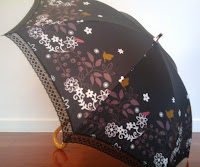 So I now own a PARASOL! Saying that makes me feel like I belong to a different era or something. But why should parasols be out of fashion? They totally make sense and they are totally cute! I think the reason we no longer use them in the West is because everybody wants to be tan and doesn't care about protecting their skin, so what's the point? Why carry around an accessory that hinders your goal of letting the sun reach your skin? Well here in Okinawa they are extremely sun sensitive. Not just because they think lighter skin is pretty, but because they don't want the damage UV light inevitable causes your skin. So since I have light skin and have to take extra care to protect it from the sun, I thought why not have a cute accessory for that purpose? So I have embraced the parasol.
