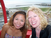 Last Saturday, August 13th, I celebrated my one year anniversary of life in Okinawa. I spent the day with my former roommate, Nana Miyagi. After going out for yakiniku (there's a barbecue in the middle of your table where you get to grill the raw meats and vegetables you order) we went on the huge Coca-Cola ferris wheel.