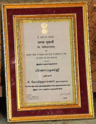 | பேராசிரியர் சி.கோவிந்தராசனார் அவர்களை சில நாட்களுக்கு முன்னர், இந்தப் பதிவிற்காகச் சந்தித்த போது எடுத்துக் கொண்ட படம். (படம் எடுத்து உதவியவர் நண்பர் கரந்தை சரவணன் அவர்கள்) |