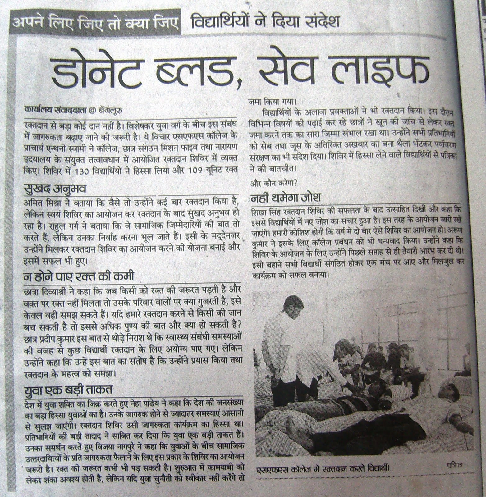 The story of the bllod donation camp was published in a Hindi dailyRajasthan Patrika on 23rd February 2011.