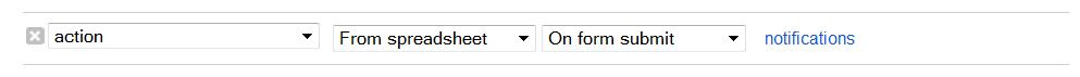 Script Source Code// author: puravidaapps.com // // reference documentation // sheet: https://developers.google.com/apps-script/reference/spreadsheet/sheet // range: https://developers.google.com/apps-script/reference/spreadsheet/range function action(e) { var key = e.values[1]; // the entered name, column 2 var action = e.values[4]; // the entered action (UPDATE or DELETE), column 5 var sheet = SpreadsheetApp.getActiveSheet(); var values = sheet.getDataRange().getValues(); Logger.clear(); Logger.log('action=' + action); if (action == "DELETE"){ del(key, sheet, values); } if (action == "UPDATE") { upd(key, sheet, values); } } function del(key, sheet, values){ Logger.log('DELETE ' + key); // http://stackoverflow.com/a/13410486/1545993 for(var row = values.length -1; row >= 0; --row){ if (values[row][1] == key){ sheet.deleteRow(parseInt(row)+1); // loop is 0-indexed, deleteRow is 1-indexed } } // end: for } function upd(key, sheet, values){ var lastRow = sheet.getLastRow(); for(i in values){ if (values[i][1] == key){ Logger.log('UPDATE i=' + i); var rangeToCopy = sheet.getRange(lastRow, 1, 1, 4); // getRange(row, column, numRows, numColumns), do not copy action column rangeToCopy.copyTo(sheet.getRange(parseInt(i)+1, 1)); } } // end: for sheet.deleteRow(lastRow); // delete last row: this is the update statement }