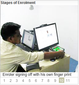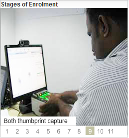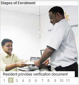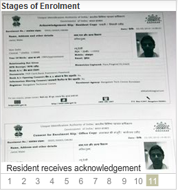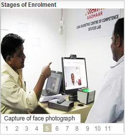 See the below photos from Left to Right --> which illustrates the stages of Aadhaar enrolment process