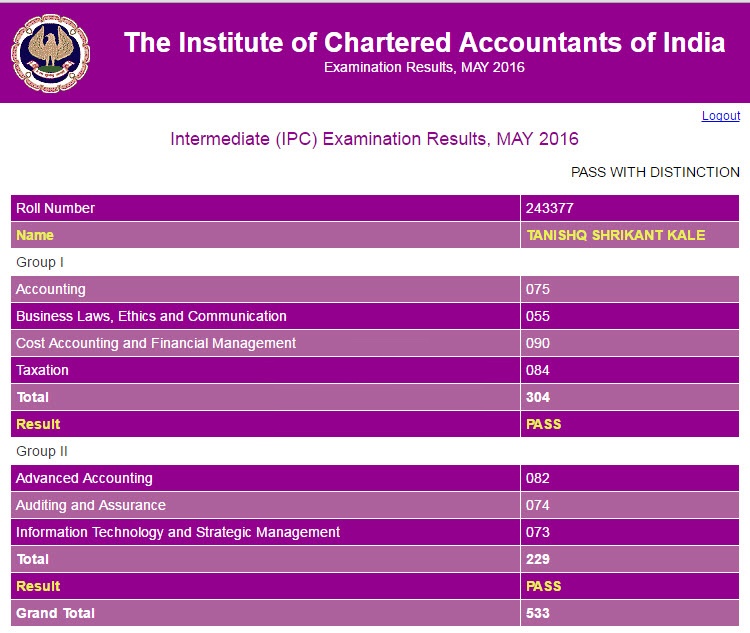 Ā . . Now below are the IPCC Topper Mark Sheet forĀ Nov 2016 .The name, mark sheet, Interview and photos of IPCC TopperĀ May 2016Ā are as follows: ā Pass percentage of IPCC May 2016 EXAM Both group āāĀ 4.78% Group IĀ Ā Ā Ā Ā Ā Ā Ā Ā ā-Ā 9.18% Group IIĀ Ā Ā Ā Ā Ā Ā Ā ā-Ā 7.06% Now below are the IPCC Topper Mark Sheet for May 2016 .. . The name, mark sheet, Interview and photos of CA IPCC Topper Nov 2015 are as follows: ā Pass percentage of IPCC NOV 2015 EXAM Both group 4.14% Group I 12.72% Group II 10/69% .Ā
