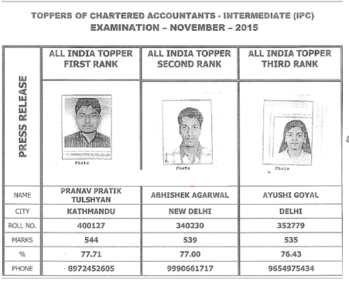 Rank Holders of CAĀ FinalĀ MAY 2015 Exams
