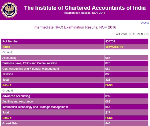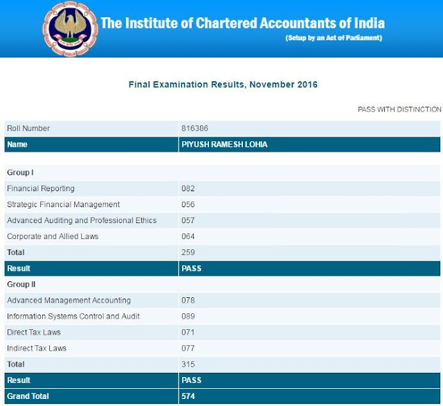 ISCA/ITSM me Pass Hone ki Keemat Tum Kya Jaano Ramesh Babu Posted: 27 Jan 2017 08:00 AM PST ISCA/ITSM me Pass Hone ki Keemat Tum Kya Jaano Ramesh BabuMost of the CA Students has faced difficulty in passing examination in ITSM in CA IPCC & ISCA in CA Final. This is the paper which can decide the fate of the students for Rank Holders. Here is the most unfortunate student of all time in the history of the chartered accountancy course. In May 2016 examination a student namedĀ Amrit VadhanĀ has scored more than 70 marks in all the subjects except in case of ITSM. He has scored exemption in all the exams but in case of ITSM he did not score good marks and failed 6 marks. The detailed marks Mark Sheet of the Amrit Vadhan is as follows: