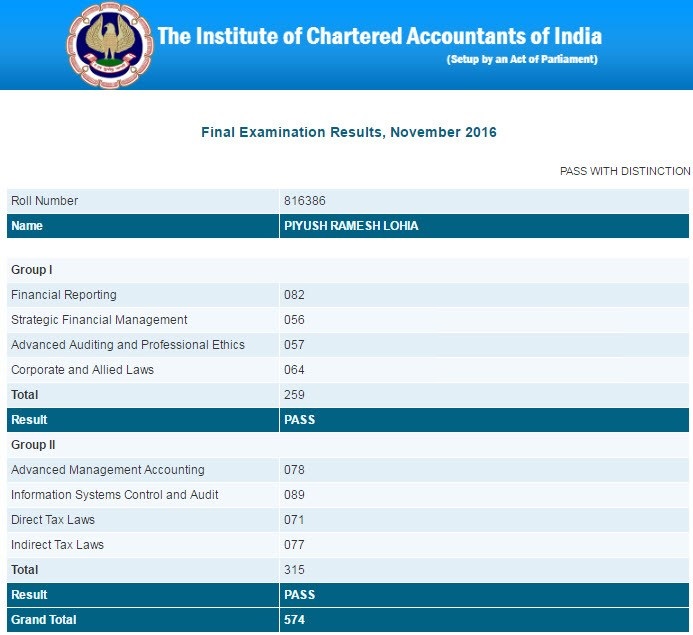 . CA Final Nov 16 Rank holders Mark SheetsĀ. .