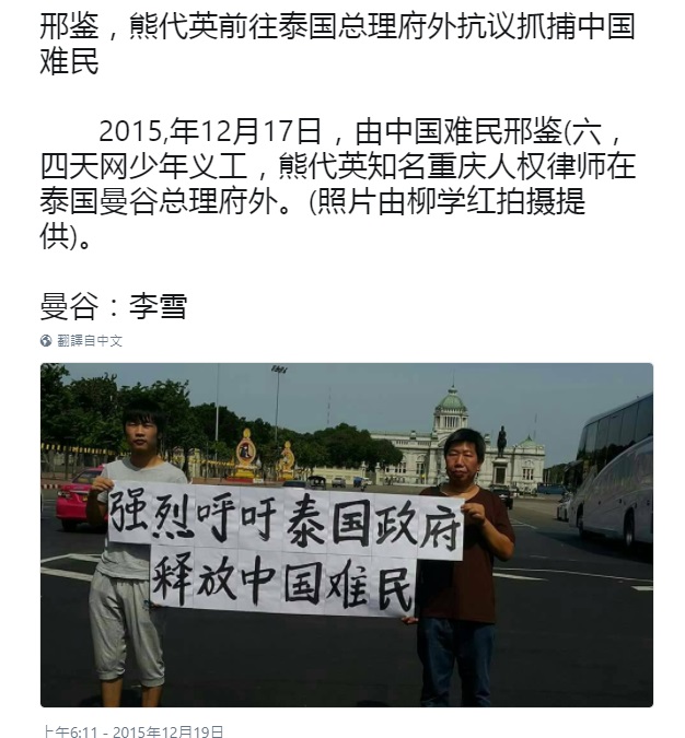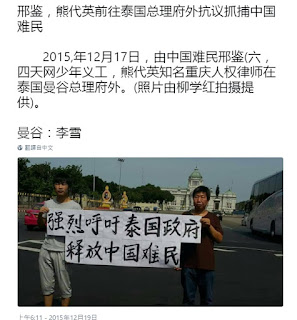 中共经济援助聯合國难民机构后 流亡泰国的「中国难民」何去何从? Posted: 11 Dec 2017 01:55 PM PST 2017-12-08 00-38-35_SkypeCall_partisanfox_-660941328069佛教国家泰国是游客的天堂,亦给逃避战乱与申难的政庇者一个喘气的空间。(严九鼎 报道) 国际人权机构的亚洲顾问夏先生对本台表示,泰国虽然没签署国际难民公约,但过去长期协助联合国做了大量的安置难民的工作,最典型的就是当年收容了许多投奔怒海的越南船民。 近十年,不少逃离中国的寻求政治庇护者,亦得到泰国政府一定程度的协助。不过,他说自从泰国政变之后,这条管道已经越来越收窄,甚至基本上已经此路不通。 中共政府经援联合国后,流亡泰国的中国难民受到联合国区别对待,处境急剧恶化! 中国难民柳学红女士在泰国的境遇 泰国,因为具有临近中国、入境容易、生活成本较低、社会相对自由、设有联合国难民署等特点,二十多年来,一直成为那些无法直接前往西方国家的中国异议人士,首选的流亡中转站,数以百计的中国政治流亡人士进入泰国,经由联合国难民署庇护的渠道,成功地到达了接受难民的西方国家,其中比较著名的人物有彭明、陈尔晋、“盘古乐队”的敖博、段信军、彭基磐、李建峰等人。 |