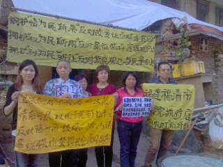 Posted: 11 Apr 2014 06:00 PM PDT (2014/4/12)权利运动发布: 昨天,福州冤民陈气、施南城、黄磊、郑建烟、池巧英、刘玉钗等到福州市鼓楼区洪山镇凤池新村,拉“维权无罪 人权万岁”横幅,为已经获得自由、却精神受到严重伤害的的冤友王宁妹压惊。 据了解,王宁妹因其二十四载住房一朝强拆变无房而四处申诉,无果。2014年3月3日进京上访,与张红、殷雪林等一起被整天寻衅滋事的党和政府的马仔反以“寻衅滋事”刑拘30天。 福建冤民在“维权无罪 人权万岁”的横幅前,还加上了“中国共产党万岁”的极具讽刺的文字,对如此“愚昧”的被欺压百姓,不知道疯狂掠夺中国人民财产的中共官员有何感想? 陈 气电话:13599425969。 刘玉钗电话:13328651738.此信息由权利运动公民权利项目编辑 |